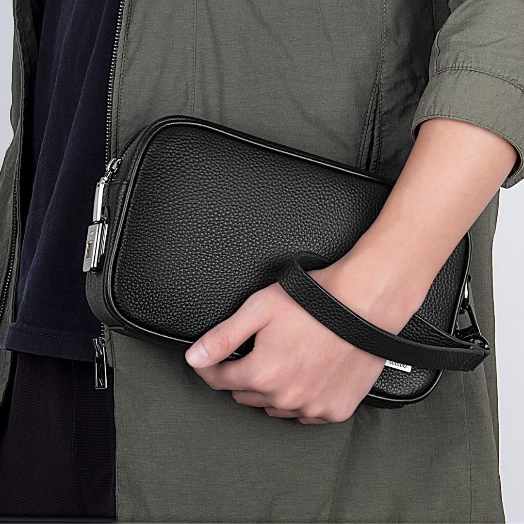 Neben dem intelligenten Fingerabdruckschloss sorgen robuste Reißverschlüsse, verstärkte Kanten und wasserabweisendes Material dafür, dass deine Wertsachen sowohl vor Diebstahl als auch vor Umwelteinflüssen bestens geschützt sind – unterwegs, im Büro oder auf Reisen.